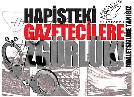 'Hapisteki bütün gazetecilerin serbest bırakılmasını istiyoruz! Basın ve ifade özgürlüğü önündeki tüm engellerin kaldırılmasını istiyoruz! Özel yetkili mahkemelerin, Terörle Mücadele Yasası'nın kaldırılmasını istiyoruz!'