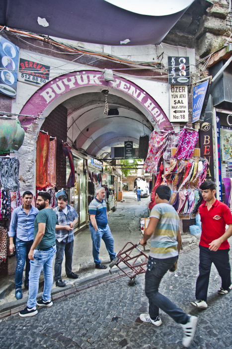“Biz kendi aramızda burayı Ermenice ismiyle Medz Nor Khan diye biliriz. ‘Salkım Hanım’ın Taneleri’, ‘Can Tertip’ filmleri, ‘Ezel’, ‘O Hayat Benim’ dizileri için burada çekim yapıldı. O şekilde yeniden biraz anımsandı ama onun dışında ortalık durgun. Çin malı akışı başlayınca, tekstil bitti” diye devam ediyor Alber Gülbenk. Dükkânının önüne küçük bir bahçe yapmış saksılardan. Boşluğu onlarla dolduruyor.