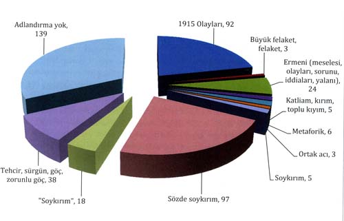 Raporda son olarak Ermeni Soykırımı’nın nasıl adlandırıldığı inceleniyor. 1995’ten 2015’e giden süreçte yapılan haber taramalarında çıkan sonuç, gazetelerde 1915’in önceleri bir Ermeni sorunu olarak yer bulduğu, Ermeni kelimesinin, ‘sözde soykırım’, ‘soykırım iddiaları’ gibi kalıplar içinde de olsa Soykırım kelimesinin önüne geçtiği yönünde. 2015 yılına gelindiğindeyse, soykırım kelimesi Ermeni kelimesi yerine geçiyor. Raporu hazırlayanlara göre bu durum, Türkiye medyasına göre olayın Ermeni meselesinden çıkmış olduğu ve bilinçli olmasa da soykırım tartışmasına dönüşmüş olduğunu gösteriyor.