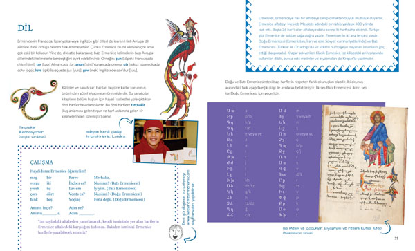 Aras Yayıncılık’tan çıkan çocuk kitabı ‘Kim Bu Ermeniler’ Diaspora’dan Ermenistan’a, İstanbul’dan Anadolu’ya Ermenilerin dağıldığı bütün coğrafyalarda bir halkın tarih, dil, din, edebiyat, müzik, dans, yemek, geleneksel kıyafet gibi başlıklar altında kültürünün izini sürüyor.