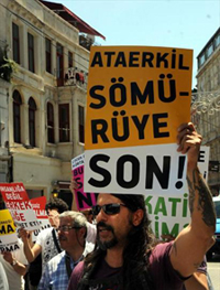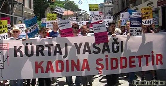 Ellerinde “Kürtaj yasağı kadına şiddettir”, “İş cinayetleri varken katil kim” yazılı pankartlar taşıyan erkekler, “Kürtaj haktır, Uludere katliam”, “Sessiz kalma, suça ortak olma”, “Çocukta yaparım kürtajda sana ne”, “Çocukları sana vermeyeceğiz” şeklinde slogan attı.
