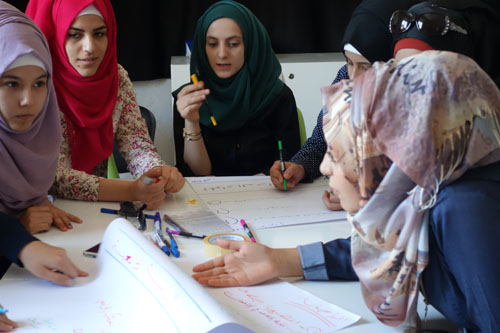 Daha çok gençler ve yetişkinlerle çalışsak da, çocuklarla ilgili de bir şeyler yapmamız gerekti, çünkü merkezler açıldıkları anda çocuklarla doldu. Suriyeli çocukların çoğu okula gitmiyor. Göç ettikten sonraki ilk senelerde sokağa da çıkamıyorlar, çünkü yabancı bir ortamdalar ve Türkçe konuşamıyorlar, ayrımcılığa uğrayabiliyorlar. Merkezler onlar için de güvenli mekânlar oldu. Anneleri eğitimlere, çalışmalara katabilmek için toplum merkezlerinde kreşler açtık. Örgün eğitime katılabilmeleri için, okula devam edebilmeleri için çocuklara Türkçe eğitimi vermeye çalışıyoruz. Türkiye çok kültürlü yaşam ve çok kültürlü eğitim sistemi konusunda deneyimli olmadığından, Suriyeli çocukların sisteme gerçek anlamda katılabildikleri söylenemez. Bu konuda yapılması gereken çok şey var. Önümüzdeki dönemde yoğun olarak bununla uğraşacağız.