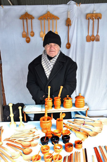 Vernisaj’dan ayrılmaya yakın Malatyalı Stepan ustayı görüyoruz. Abovyan’daki marangozhanesinde ürettiklerini burada satıyor, onunla daha sonra buluşmak üzere sözleşiyoruz, ertesi gün de sabahtan Stepan Bey ve oğlu Sevan’ın atölyesine atıyoruz kendimizi. Abovyan şehri Yerevan’ın suyunun geldiği yer, oraya göre daha yeşillik, Malatyalı Stepan da atölyesinin etrafına on sekiz tane kayısı ağacı dikmiş, hepsi de tutmuş. Torunu da kendi ve oğlu gibi marangoz olmak için ilk adımını atmış. Zamanında İstanbul’dayken varlıklı ailelere sipariş üstüne mobilya yaparmış, Ermenistan’daysa talebin az olduğunu söylüyor. Daha çok hediyelik eşyalar ve tahta kaşıklar yapıyor, bana da özel koleksiyonundan ceviz ağacından yapılma iki güzel kutu çıkardı. Bir yandan da sobada patates pişiyordu.