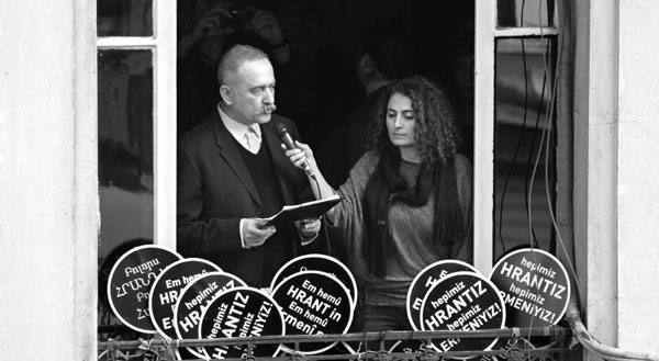 “Ben bu dünyanın camını, çerçevesini indirmek istiyorum. Başta bu Agos’un güvenlik camları var, onları indireceğim. Babamın büstü var bir tane. Onu kırmak, parçalamak istiyorum. Ben büstleri sevmiyorum, ben insanları seviyorum. Ama değil… Cam çerçeve mi indireceğiz? Siz üç yıl önce nasıl yapıldığını gösterdiniz bu işin. Ve üç yıldır gösteriyorsunuz. Asıl öyle kalabalık olup o vakarı koruyabilmek lazım. Çünkü onu yönetebiliyor devlet, kırmayı, dökmeyi; ama sizi yönetemiyor.