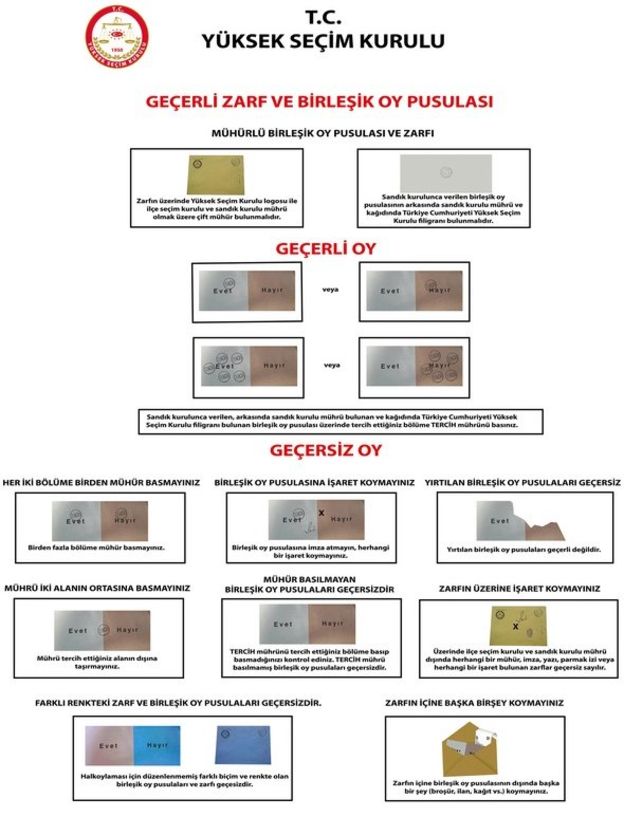 Seçmenlerin, anayasa değişikliği referandumunda oy kullanırken, Türkiye Cumhuriyeti kimlik numarasını taşıyan kimlik kartlarından herhangi bir resmi nitelikteki belgeyi yanında bulundurması gerekecek.