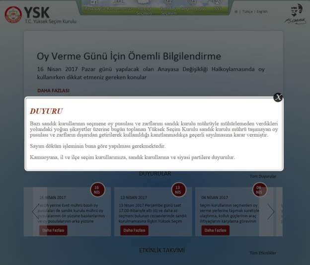 YSK’nın resmi internet sitesinden bugün akşamüstü yapılan açıklama şöyle: