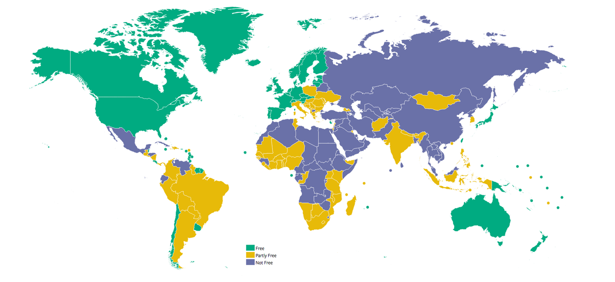 ABD merkezli sivil toplum kuruluşu Freedom House’un yayımladığı yıllık basın özgürlüğü raporuna göre dünyanın sadece %13’ü özgür basına sahip, %45’inde ise basın özgürlüğünden söz etmek dahi mümkün değil.