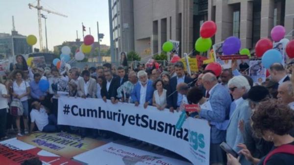 Cumhuriyet gazetecileri ve yöneticileri 9 ay sonra ilk kez hakim karşısına çıkıyor. Sansürün kaldırılmasının 109. yıl dönümünde, 24 Temmuz’da görülecek duruşma öncesi adliye önünde meslek birlikleri, siyasi partiler ve uluslararası heyetler basın açıklaması yaptı.
