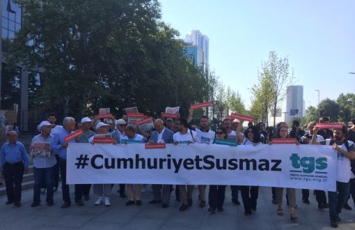 Gazetecilerin yargılandığı 19 sanıklı Cumhuriyet davasının ilk duruşması için Cumhuriyet Gazetesi binası önünden Çağlayan'daki İstanbul Adliyesi'ne yürüyüş gerçekleşti.