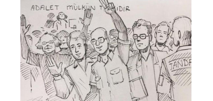 İstanbul 27. Ağır Ceza Mahkemesi’nde bugün beşinci oturumu görülen ilk duruşmada çizer Musa Kart, yazar Hakan Kara, yönetici Önder Çelik, okur temsilcisi Güray Öz, avukatlar Bülent Utku ve Mustafa Kemal Güngör adli kontrol şartıyla tahliye edilirken, Kitap eki Yayın Yönetmeni Turhan Günay şartsız tahliye edildi.