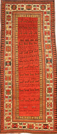 Bu yorumlardan biri şöyle Metin, Zartarig İsraelyantz adlı bir kadın tarafından yakılmış bir ağıdı temsil eder. ‘-yantz’la biten soyadı, aristokrat bir aileye mensup olduğuna işaret etmektedir. Geçim için halı dokuma işi yalnızca yoksullar tarafından yapılsa da, üst sınıflardan genç kızların da hobi olarak bu işi öğrenmeleri sık rastlanan bir durumdu. Bu halıyı Zartarig dokumuş olabilir, ancak yazım hataları ona ait olamaz; belki de halıyı, yoksul, eğitimsiz bir dokumacıya sipariş etmişti.