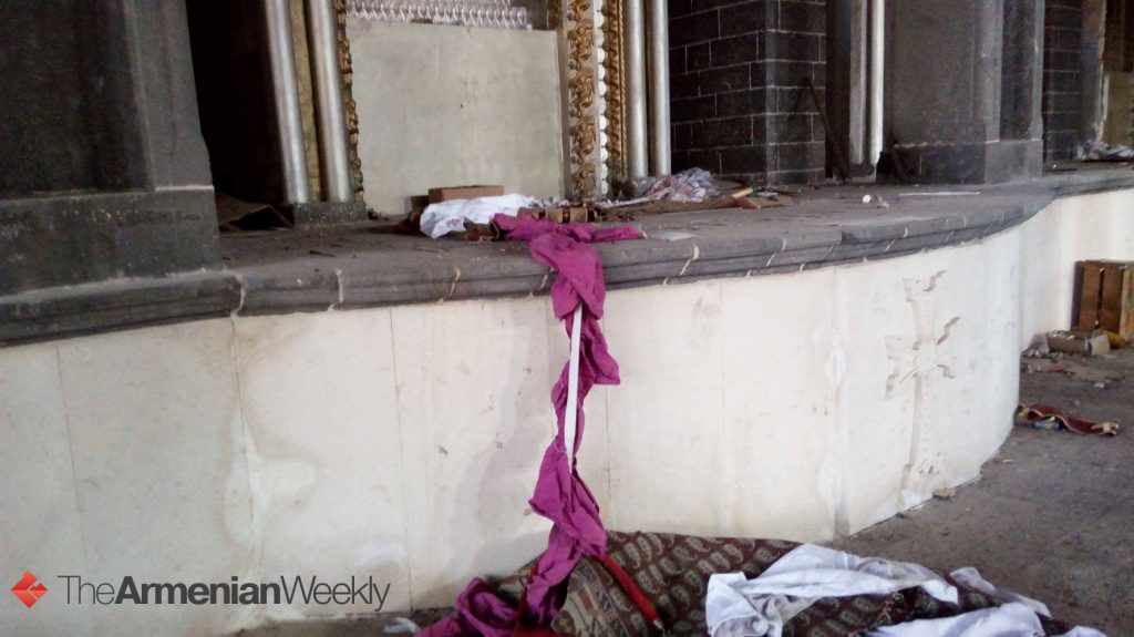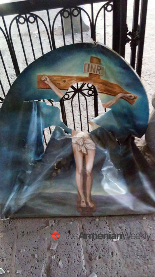 armenianweekly.com internet sitesinin geçen hafta yayımladığı fotoğraflarda, Diyarbakır Surp Giragos Kilisesi’nin harabeye çevrildiği, İsa Mesih'in çarmıha gerilmesini gösteren bir tablonun da açıkça saldırıya uğradığı görülüyor.