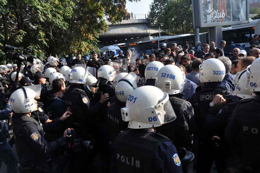 10 Ekim Ankara Garı Katliamı’nın ikinci yıl dönümünde, katliamı lanetlemek ve yaşamını yitirenleri anmak için Ankara Garı önünde yapılması planlanan anma törenine polis biber gazıyla saldırdı.