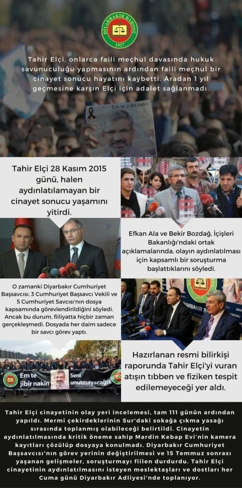 İnsan Hakları Ortak Platformu (İHOP) ve Diyarbakır Barosu, Tahir Elçi soruşturmasıyla ilgili bir infografik hazırladı.