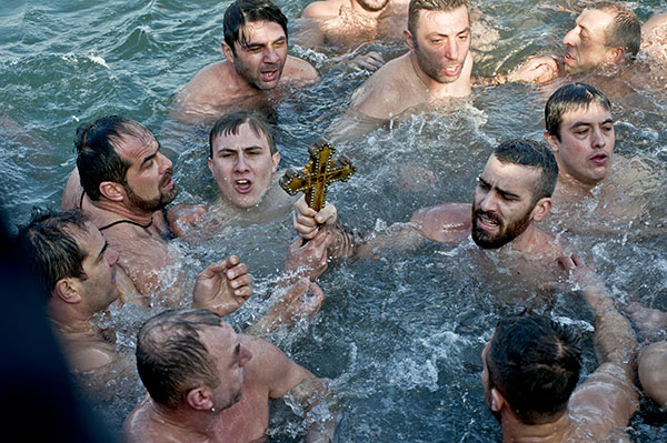 Burada Patrik Bartholomeos'un duanın ardından denize attığı haçı çıkarmak için teknelerde bekleyenler denize atladı. Haçı, bundan önceki iki sene olduğu gibi Yunanistan'dan gelen 30 yaşındaki antrenör Nikos Solis çıkardı.