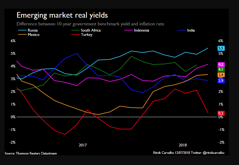 Halen süren çalkantının nedeni lirada büyük ölçüde 2010'dan sonra başlayan uzun süreli kayıplar. Bunun zararı iki yönlü oluyor. Öncelikle enflasyonu yükseltiyor ki bu da, Cumhurbaşkanı Tayyip Erdoğan'ın, enflasyonu düşürmek için geleneksel politika tepkisi olan faizlerin yükseltilmesinden hoşlanmadığını bilen Merkez Bankası için sorun oluyor. İkinci olarak devletin, Türk şirketlerinin ya da bireylerin dolar cinsinden borçlarının geri ödenmesini daha pahalı hale getiriyor. Uluslararası Ödemeler Bankası (BIS) verileri Türkiye'nin, Meksika'nın 256 milyar dolar borcunun biraz aşağısında, 200 milyar dolar gibi ağır bir borç yükü olduğunu gösteriyor. Bir iyi haber ise, TL'nin şu anda gerçek değerinin oldukça altında olması. State Street Global Advisors tarafından kullanılan bir satın alma paritesi değerleme modeli, TL'nin halen değerinin yüzde 32 altında olduğunu gösteriyor. TL'den sonra en çok değerinin altında işlem gören para birimi yüzde 25 ile Güney Afrika randı ve yüzde 18 ile Meksika pesosu.