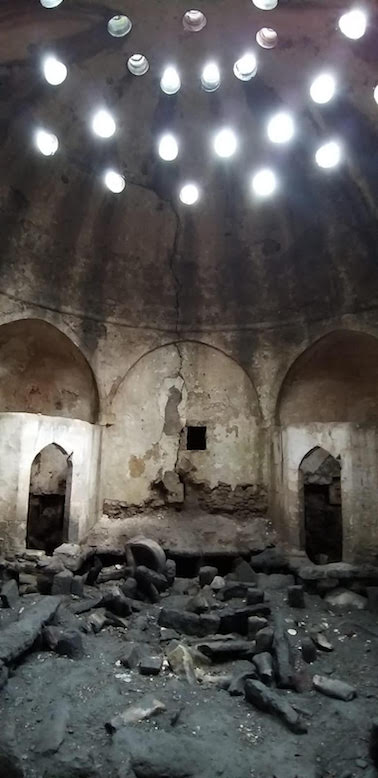 Arsanın arkasında bulunan şekilsiz depoyu incelediğimizde, kiliseden kalan birçok taşın bu deponun yapımında kullanıldığını görüyoruz. Üzerinde kabartma veya yazı bulunan taşlar tamamen kazınmış. Ancak kapının girişinde sağda yere yakın bir haç kabartması gözümüzden kaçmıyor. Onu neden kazımamışlar anlayamadık. Arsadan ayrılmadan önce kilisenin toprağından bir avuç da Kevork dayıma alıyorum. Biraz ilerleyince türkü anamız Zehra Bilir’in yani gerçek adıyla Eliza Ölçüyan’ın evinin olduğu caddeye geliyoruz. Caddeye sanatçının ismi verilmiş. Eski Ermeni evlerinden bir tanesini görüyoruz ve içimiz parçalanıyor. Güzelim evin hali virane. Biraz ilerleyince halkın “Ermeni Hamamı” dediği Almasegan veya Almasik hamamı var. Hamam gürül gürül akan derenin yanına yapılmış, şu an dış kısmının yarısından fazlası yıkık vaziyette. Orijinal halini hayal etmeye çalıştığımda güzelliğinin yazı ile anlatılamayacağına inanıyorum. Bu kadar güzel bir eseri insanoğlu nasıl kırıp dökmeye kıyar, anlamanın imkanı yok.