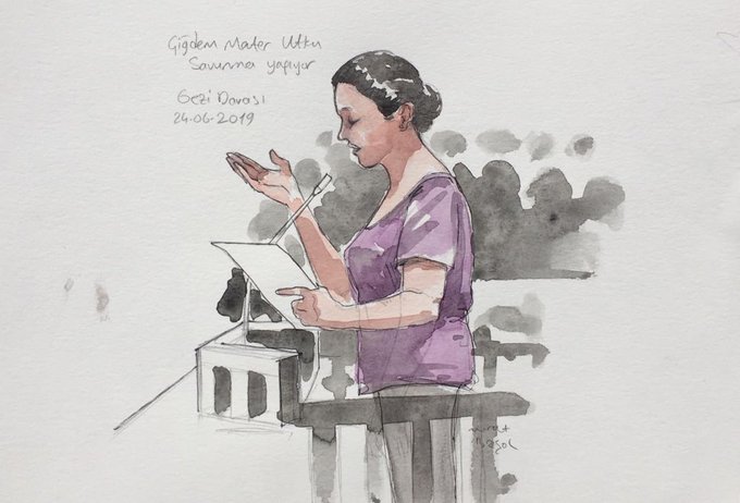 Gezi davasının ilk gününde tutuklu sanıklar Osman Kavala ve Yiğit Aksakoğlu'nun ardından Mücella Yapıcı, Çiğdem Mater ve Hakan Altınay savunma yaptı.