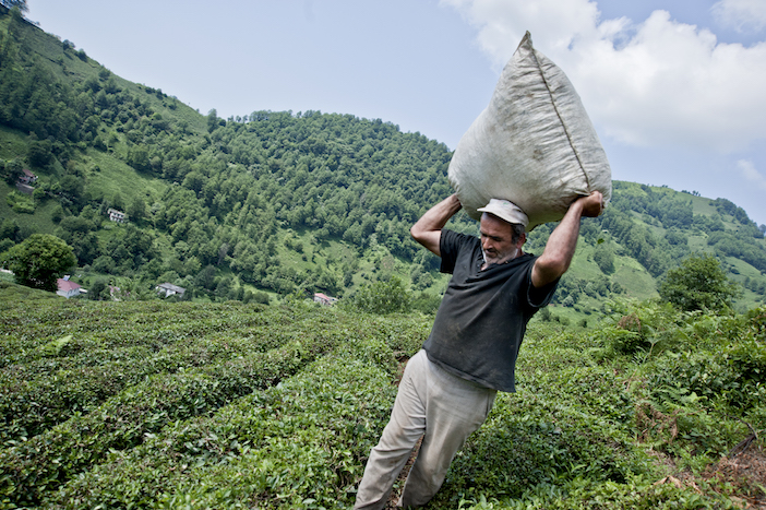 Gürcistan’dan gelen işçilere her yerde rastlamak mümkün. İşleri oldukça ağır. Çay tarhları çoğu kez sarp yamaçlara kurulu. Gün boyu dikenli çalılar arasında, çamur içinde, yakıcı güneşin altında çalışmak hiç kolay değil. Yaprakları kesip çuvallara doldurmak, sanki hiç bitmeyecek bir iş izlenimi veriyor ilk başta. Ama üç işçi gün akşama kavuşuncaya kadar bir ton çay yaprağını toplamış oluyorlar. Sekiz yıl önce, Şafak’ın annesi Ayşe de Gürcü işçilerle birlikte durmaksızın çalışırdı. Onlarla ter döker, yemek molalarında da onlarla birlikte yer sofrasına otururdu. Komşu evlerin kadınları da hemen hemen aynı düzende çalışırlardı. Bu kez Ayşe artık çay toplamaya çıkmıyor. Gününü üç yaşındaki torununun ve hasta annesinin bakımı ile geçiriyor. Bir de Gürcü işçilerin kahvaltı ve öğlen yemeklerini hazırlama görevi var. Bu da kolay bir iş değil. Sait ve Çetin her sabah, henüz güneş doğmadan, saat 04.00- 04.30 sularında Gürcistan sınırına gidip işçileri alıyorlar. Onlar geldiğinde kahvaltı hazır olmalı. Çay toplama mesaisi saat 05.00- 05.30 gibi başlamak zorunda. Akşam, mesai saatinin sonunda işçiler tekrar sınır kapısına götürülüyorlar. Herkes akşam yemeğini evinde, ailesiyle yemeli. Dikkatimi çeken ise bu çileli çalışma organizasyonundan kimsenin şikâyetçi olmayışı. Gürcü işçilerle konuştuğumda hallerinden memnun olduklarını söylediler. “Bizim oralarda işsizlik var. İş bulsan dahi günlük kazancın 60 TL civarında. Burada günde 200 TL’ye yakın kazanıyoruz. İşimiz yorucu ve ağır. Ama altından kalkıyoruz çok şükür. Böylece çoluğun, çocuğun geçimini sağlayabiliyoruz”. İşin püf noktası ise ücretlendirme sisteminde. Eskiden Gürcü işçiler yevmiye ile çalışıyordu. Şimdi ise Sait ve Çetin toplanan ürün üzerinden, kilo başı 65 kuruş ödüyorlar. Bu da onların daha verimli çalışmasına, işten kaytarmamalarına yol açıyor.