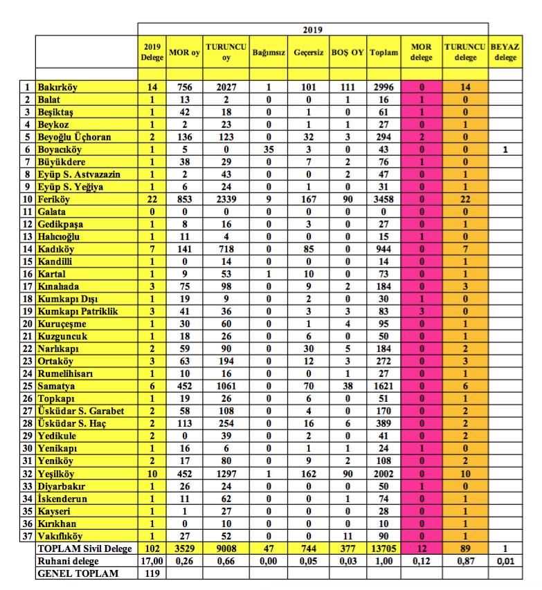 Yapılan sayım sonucunu göre Turuncu liste 89, Mor liste 12 delege çıkardı. Toplam 13.705 seçmen oy kullandı. 744 kişi geçersiz, 377 kişi boş oy kullandı. Geçersiz, bilhassa da boş oylar yurtdışı adayların katılımının engellendiği seçim sürecine karşı bir tepki olarak değerlendiriliyor. Aynı gerekçeyle boykot nedeniyle sandığa gitmeyenler de oldu.