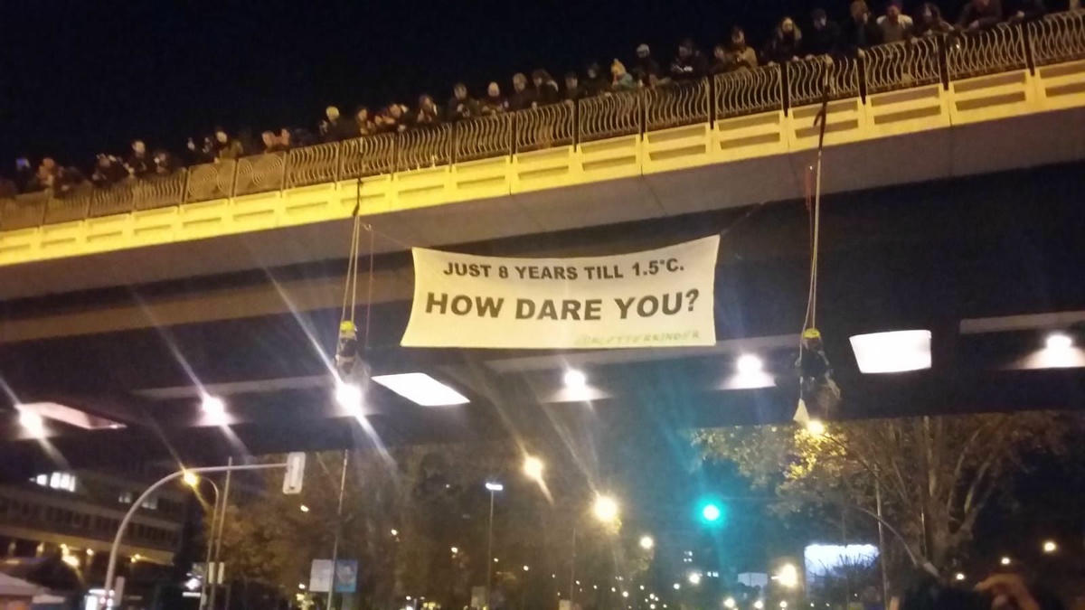 Hedeflenen sera gazı seviyelerine ulaşmak için çok zamanımız yokken karar alıcıların bir türlü harekete geçmemesi Madrid’de gerçekleştirilen COP 25 esnasında da çeşitli eylemlerle iklim aktivistlerini bir araya getirdi. Cuma sabahı BM İklim Değişikliği Konferansı’nın gerçekleştiği bina girişinde oturma eylemi yapan Gelecek için Cumalar hareketinin genç iklim aktivistleri, akşam da çok sayıda yurttaşın katıldığı büyük/renkli bir yürüyüş gerçekleştirdiler. Aralarında Greta, Atlas ve Arşak’ın da bulunduğu ve çoğunluğu çocuklardan oluşan 500 bin kişi iklim acil sloganıyla yürüdü. Yürüyüş sırasında köprüden sarkan iki çocuk, Greta Thunberg’in New York İklim Zirvesi’nde yaptığı konuşmada söylediği “1.5 dereceye sadece 8 yıl kaldı; nasıl cüret edersiniz!” sözünün yazılı olduğu bir pankart açtılar. Ertesi gün ise Yokoluş İsyanı aktivistleri kent merkezini 2 saat boyunca işgal etti. Manifestolarını okuduktan sonra yokoluş isyanı aktivistleri Bee Gees’in Staying Alive şarkısı ile artık ikonik hale gelen dans performanslarını gerçekleştirdiler. Bir başka eylem, okyanuslardaki oksijen seviyesinin azaldığını ortaya koyan rapora dikkat çekmek ve okyanusların daha iyi korunmasını talep etmek için Yokoluş İsyancılarının balina iskeleti eşliğinde mavi kostümlerle Madrid’in caddelerinde yürümesi oldu.