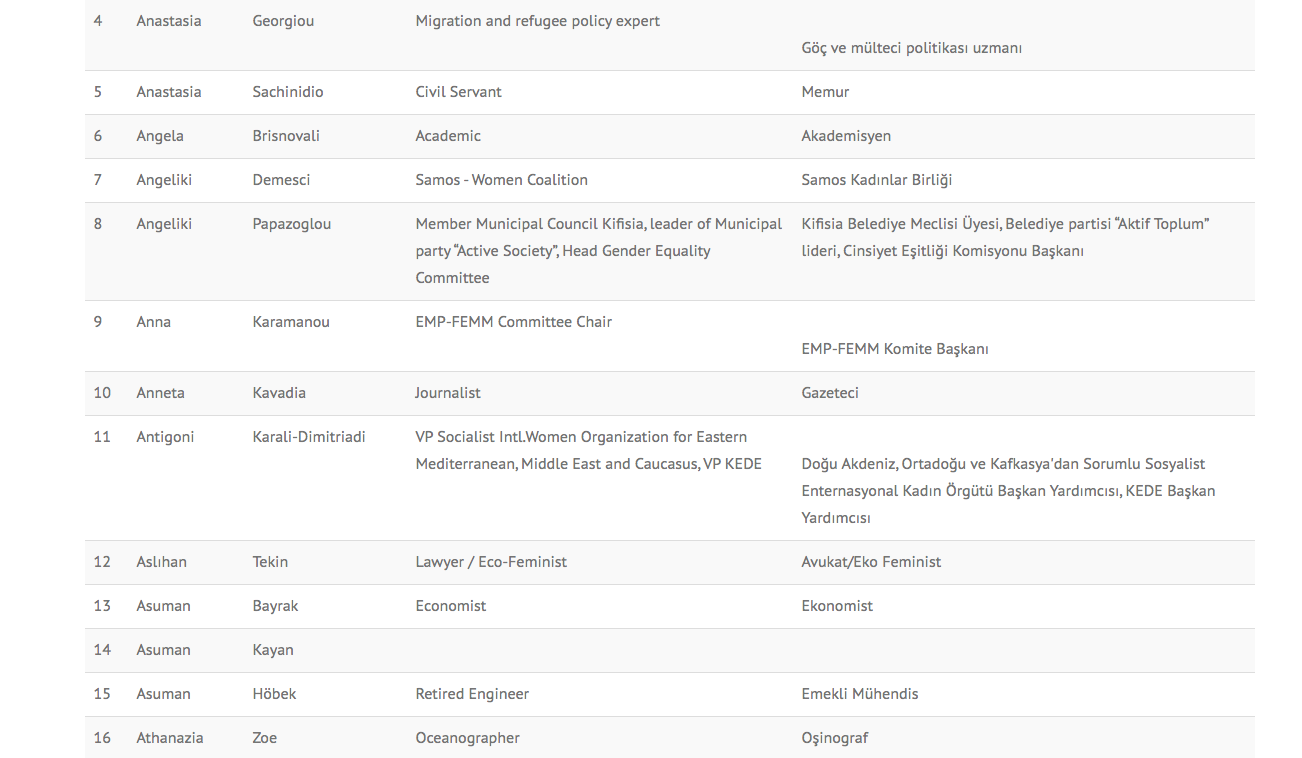 İki ülkenin barışsever kadınları olarak, Dünyayı tehdit eden patriarkal sisteme rağmen, Ege'de, ortak kültürümüzü geliştirerek, dayanışma ve dostlukla, barış için çabalamaya kararlıyız." (Bianet)
