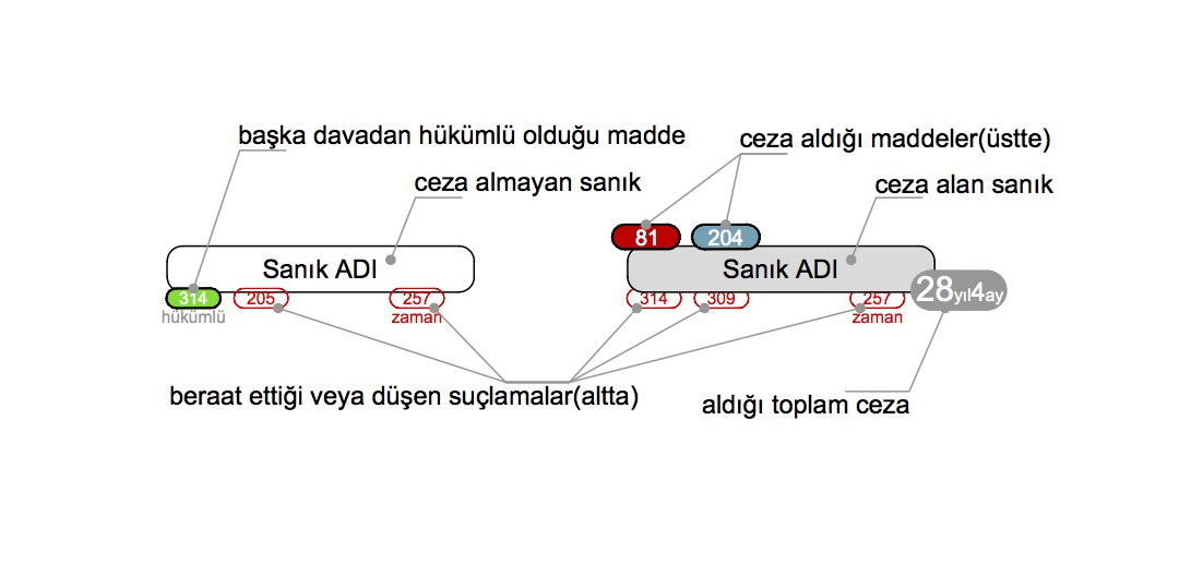 Hemen belirtmek gerekir ki söz konusu karar kesinleşmiş değil. Müdahil taraf da, sanıklar da itiraz edecekler, ettiler ve kararın kesinleşmesi için epeyce bir vakit geçecek. Gördüğünüz karar tablosunda adları bulunan kişiler şu an için hükümlü değil, sanık durumundalar (varsa başka davalardan verilen hükümler hariç). Bugüne kadar olduğu gibi bugün de kişiler hakkında ‘suçlu’, ‘suçsuz’ gibi değerlendirmelerde bulunmaktan kaçınacağız. Elbette bu ilelebet sürmeyecek. Ağır aksak ilerleyen yargı sürecinin bitmesini beklemek de bu saatten sonra çok anlamlı değil. Ancak daha ileri yorumları şimdilik başka yazılara bırakalım ve kararı kendi mantığı içerisinde değerlendirmeye çalışalım.