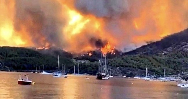 Ne gibi? Bodrum’a girerken geçtiğimiz Güvercinlik’in hemen karşısındaki koca ormanın 13 yıl önce yanmasının ardından Titanic adlı 5 yıldızlı bir otele dönüştüğü gibi. Doğanın intikamına bakınız ki, şimdi etrafındaki orman ateş alınca bu otel Bodrumlu tekneler tarafından tahliye edildi .