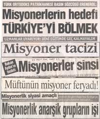 Bu örnek 1995 yılından... Günümüzde de durum değişmiş değil. Üstelik ders kitaplarında nefret suçu niteliğindeki ırkçı ifadelerin ayıklanmaya başladığı iddia edilen günümüzde Milli Eğitim Bakanlığı tarafından yayımlanan 8.sınıf İnkılap Tarihi ve Atatürkçülük kitabında ‘Türkiye’ye Yönelik Tehditler’ başlıklı bölümde ‘Misyonerlik Faaliyetleri’ kısmında misyonerlik tanımı yapılmaya gerek bile duyulmadan, Hıristiyanlıkla ilgili her türlü basın, yayın faaliyeti “bölücü bir tehdit” olarak tanımlanıyor.