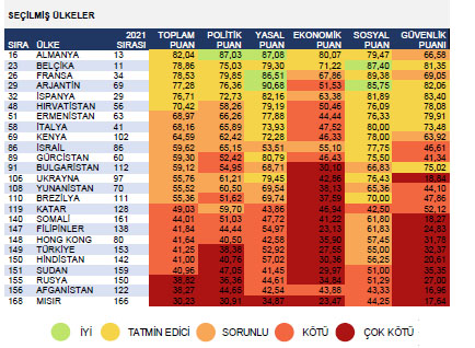 Rapora göre Dünya Basın Özgürlüğü Endeksi'nde 2005 yılında 98'inci sırada yer alan Türkiye, Avrupa Birliği reform süreciyle çelişen bir biçimde listedeki yerini giderek kaybetmiş; haberciliğe dönük yoğun ve çeşitli baskılar nedeniyle 2010 yılında 138, 2015'te 149, 2020'de 154'üncülüğe gerilemişti.