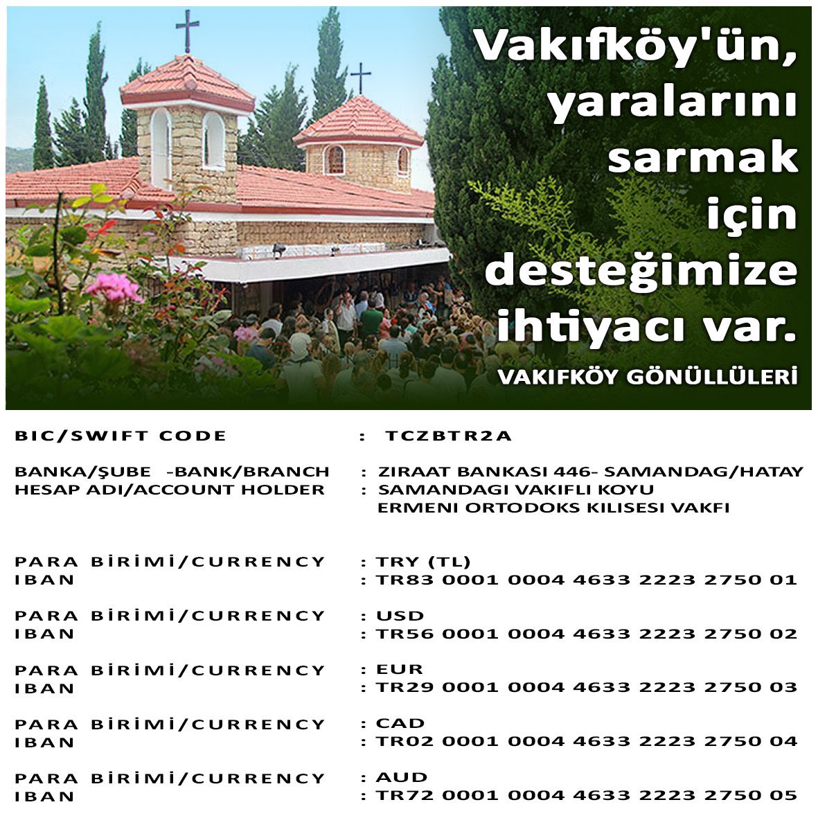 K.Maraş ve Hatay merkezli depremlerde hasar gören Vakıfköy için yardım kampanyası başlatıldı. 20 Şubat'taki Hatay depremleri ile birlikte köydeki evler oturulamaz hale geldi.