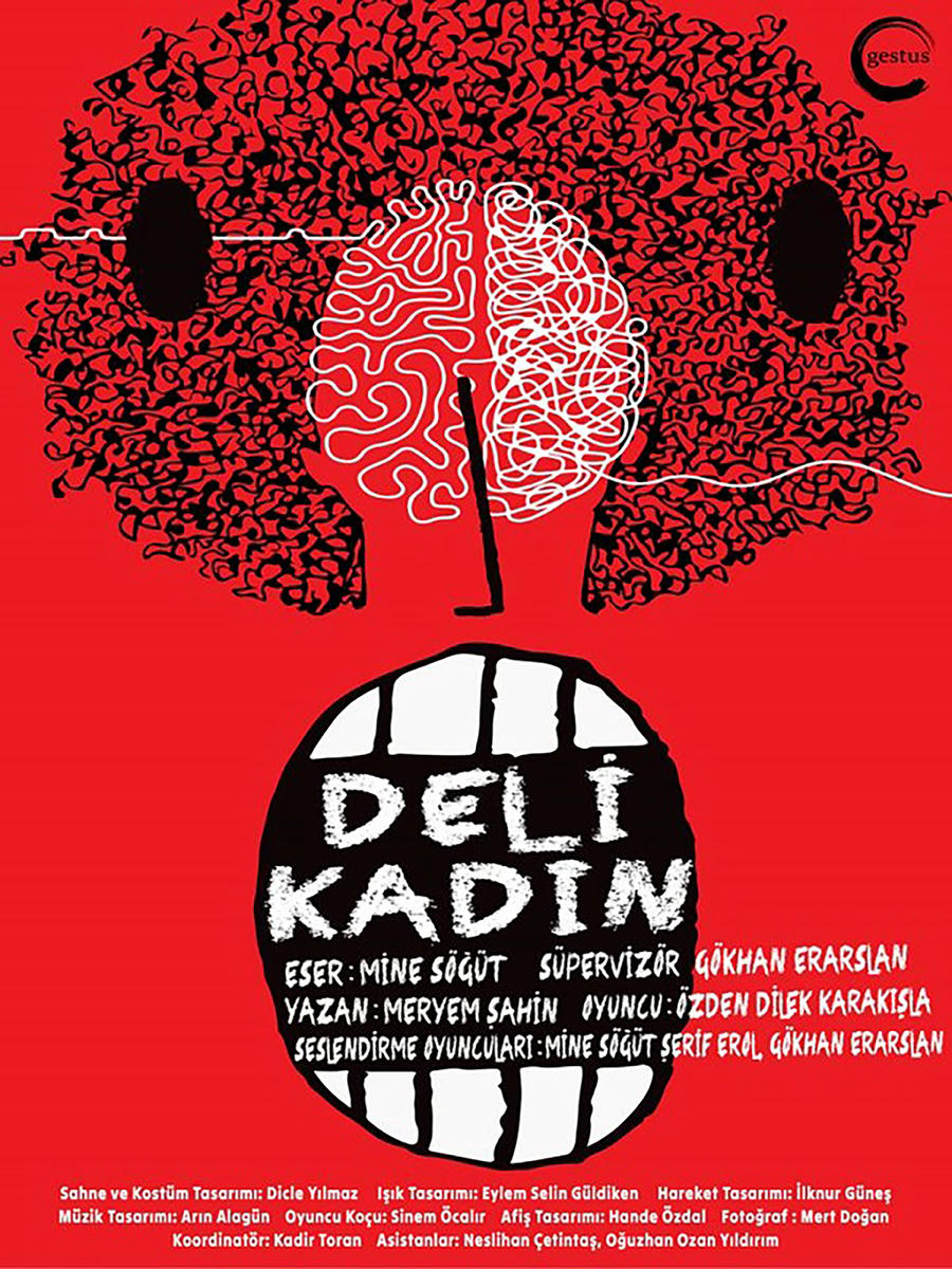 ‘Deli Kadın Hikâyeleri’, aklın kıyısında gezinen, kadınlıklarını bir lanet gibi sırtlarında taşıyan, hepsi ‘kaybetmeye’ yazgılı, içe işleyen yalnızlıklarıyla kalp burkan hayatları, varoluş kâbuslarını anlatan Mine Söğüt imzalı bir eser. Tiyatro uyarlamasını Meryem Şahin’in kaleme aldığı yorumlamada, oyuncu bir kadının, kitaptaki hikâyeleri bir tiyatro oyunu olarak prova aşamasında yaşarken, içselleştirdiği yalnızlığıyla yüz yüze gelmesinin acıklı parodisini izliyoruz. Her biri unutulmayacak delilik hikâyeleri, her biri unutulmayacak sahnelerle farklı bir anlatı, karanlık bir komedi.
