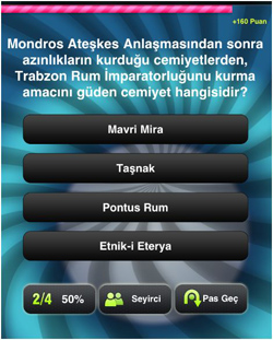 Bir başka yarışmada ise şu soru çarpıyor gözüme: Mondros Ateşkes Antlaşması’ndan sonra azınlıkların kurduğu cemiyetlerden, Trabzon Rum İmparatorluğunu kurma amacını güden cemiyet hangisidir?