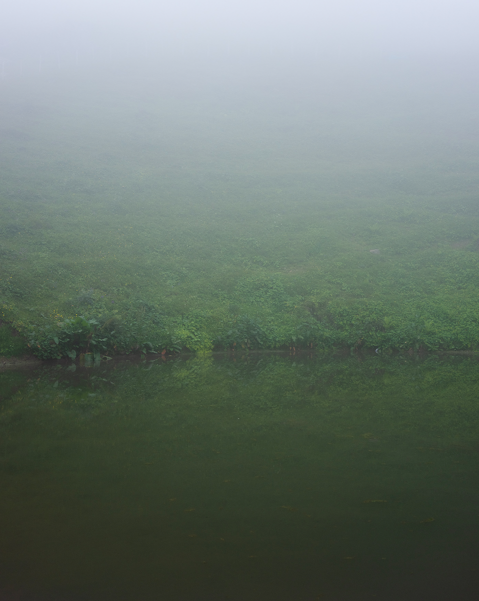 Bu projeyi yaparken yok edilmiş ve yerinden edilmiş iki önemli aktörle çalıştığım için sahada hislerime güvenmeyi seçtim. Bildiğim, okuduğum şeylerden ve araştırmanın beni götürdüğü yerlerden hareketle, doğaya dair iki önemli varlık, Dipsiz Göl ve Tanrıça Anahit benim için o coğrafyaya olan etkileri ve artlarında bıraktıklarıyla var oldular. Mesela gölün etrafındaki gerçekten inanılmaz zengin flora, yüzyıllardır gölün suyundan besleniyordu. Ya da Anahit’e inanan Ermeniler, etraflarındaki doğadan ilhamla Anahit’in varlığını hissediyorlardı. Bu proje göle ve Anahit’e adanmış, onlara odaklanmış bir anıtsal deneyim benim için, dolayısıyla insanları dahil etmek istemedim. Projedeki ağır konuların içinde kendimi turist bir sanatçı olarak konumlandırdığımı o dağ manzarasıyla ve ondan bir önceki fotoğrafın altına yazdığım notla belirttim. Serginin tümüne uyduğunu düşündüğüm soyut bir anlatım yoluyla, bazı fotoğrafların altında bir araya geldiklerinde bir şiir oluşturan metinler yazdım. Genel olarak da fotoğrafta figür benim için karmaşık bir konu. Gerçekten bir bağ kurmadığım, iznini almadığım ve konuyla bağlantısını olmazsa olmaz bulmadığım projelerde portre çekmiyorum.