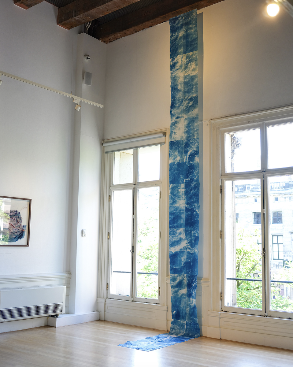 Sergide üç çeşit baskı yöntemi kullanıldı. Biri normal Fine Art baskı dediğimiz sistem, diğeri siyanotip ve sonuncusu Polaroid emülsiyon kaldırma (Polaroid emulsion lifting) denen özel bir teknik. Bu sergide oldukça soyut bir dil kurguladım ve anlatmak istediğim hikâyelere uygun teknikler seçtim. Mesela, sergide 36 adet siyanotip baskıdan oluşan bir yerleştirme var, Fırat Nehri’nin sularının fotoğraflarından oluşuyor. Anahit’e adanmış tapınaklar Hıristiyanlığa geçiş döneminde Roma İmparatorluğu tarafından yıkılmış, bildiğin gibi, yüzyıllar sonra bildiğin bütün Ermeni varlıkları da harabelere dönüşmüş durumda; bakımsızlık, istismar ve vandalizme terkedilmiş. Dolayısıyla zamanında Fırat’ın ve Munzur’un çevresinde Anahit’e inanan insanların yaşamlarından bana hayatı andıran tek şey bölgenin doğası, nehirlerin suyu. Anahit bereket, bilgelik ve su tanrıçasıydı. Siyanotip ile derin bir mavi renginde baskı elde ediyorsunuz. Pelür kâğıdına bu teknikle baskı yapmak da çok zor ve uzun süren bir süreç. Dolayısıyla üretim sürecini yavaşlatmış ve kendimi Fırat’ın suları ve Anahit düşünceleriyle iki haftayı aşkın süre geçirirken buldum.