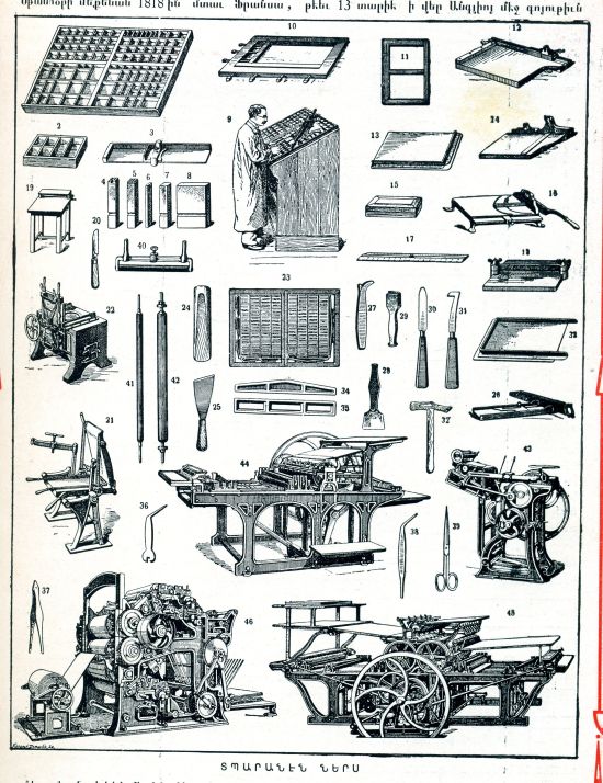 Ermeni ve Osmanlı matbaacılık tarihinin bir diğer önemli ismi Hovhannes K. Mühendisyan (1810-1891), Ermenice harfleri çelik üzerine kolayca dizmek için, 1846’da, dönemi için büyük bir yenilik olan özel bir alet ve makine icat etti ve 1844’te kaimenin (kâğıt para) basımı işini üstlendi. Mühendisyan’ın döktüğü Osmanlı yazı kalıplarıda Latin harflerinin kabulüne kadar kullanıldı.