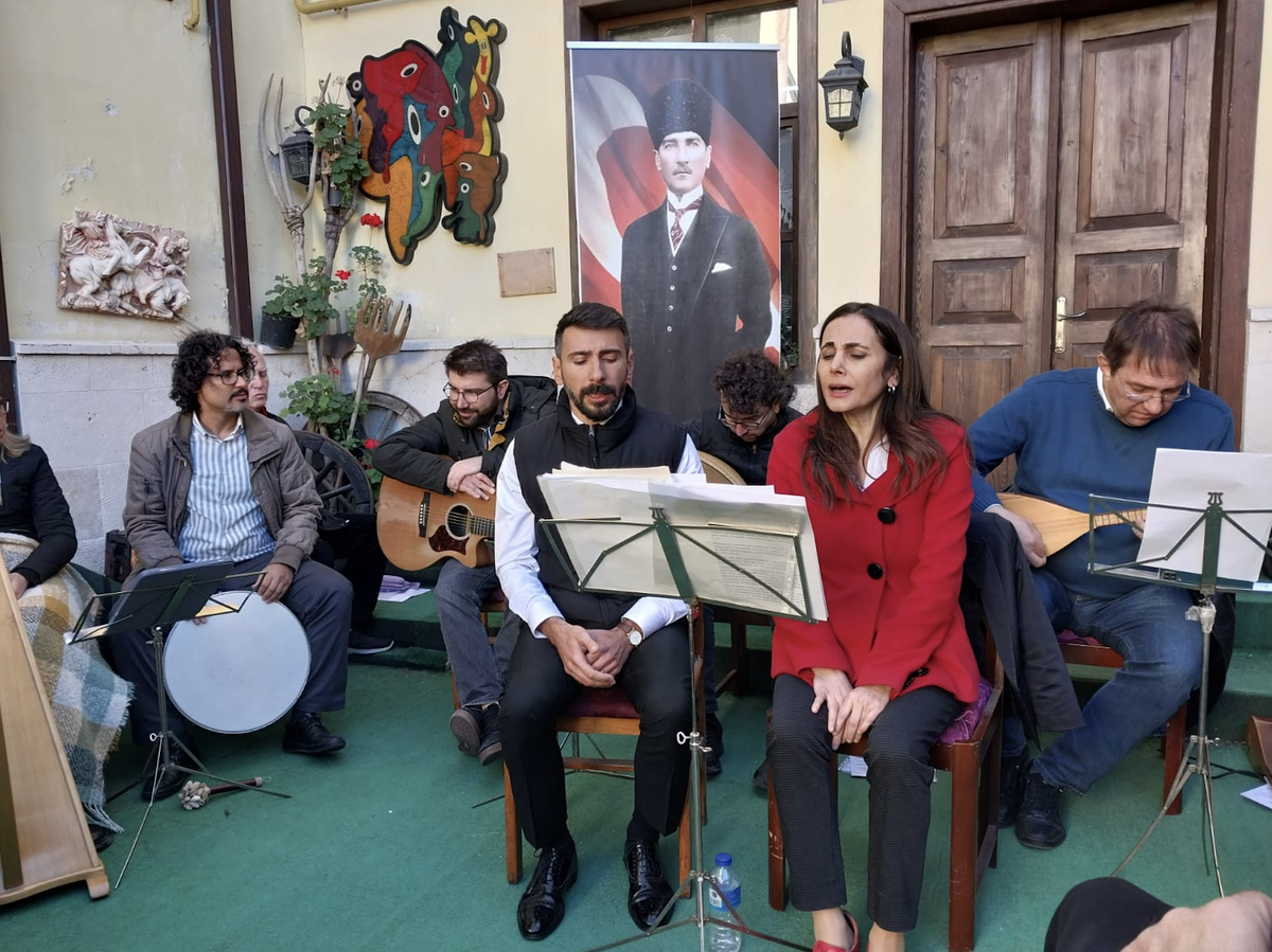 Film gösteriminden sonra etkinlik konağın bahçesinde devam etti. Burada, Prof. Cenk Güray, Gomidas ismiyle tanışma sürecini anlattı ve “Konservatuar çevresinde hepimiz Gomidas’ın sanatı hakkında bilgi sahibiyiz. Bugün aramızda olan sevgili Duygu Güvener’in doktora tezi de Gomidas Vartabed’in müziği hakkında” dedi. Bu açıklamaların ardından ben de bir konuşma yapmak üzere kürsüye çıktım. Aklıma ilk gelen Ermenice sözcükler Gomidas’ın özyaşam öyküsünün ilk satırlarıydı. Daha sonra, bir kentin kayıp evladına yeniden kavuşmasının anlamına değinerek söz konusu kayıp evladın yıllar içerisinde uluslararası bir üne kavuştuğunu ama hemşerilerinin bundan haberdar olmadıklarını söyleyerek 155 yıl sonra gerçekleşen bu geri dönüşün çok önemli olduğuna değindim. Ardından, etkinliğin müzikal bölümü başladı. Bu bölümde Murat İçlinaçla ve Duygu Güvener vokalist olarak Gomidas’ın eserlerini seslendirirken Miyase Örümlü neyle, İsmet Karadeniz rebapla, Mesude Elif Güngor Sarıkaya arpla, Alişan Budak udla, Caner Bektaş gitarla, Mustafa Göçer vurmalı sazlarla ve Cenk Güray da cura ve Abdal sazıyla ikiliye eşlik ettiler. Cenk Güray’ın Gomidas’a adanmış bir bestesinin ardından sanatçılar, rahibin çok bilinen eserlerden oluşan bir repertuar sundular. Dinletinin sonunda Prof. Güray, sanatçıları tek tek tanıtırken her birinin doktoralarına vermeye hazırlanan akademisyenler olduğunu da notlarına ekledi. Konserin ardından dinleyiciler konuk sanatçıları büyük bir coşkuyla çevrelediler ve gecikmiş de olsa bu buluşmanın gerçekleşmesinden duydukları mutluluğu paylaştılar.