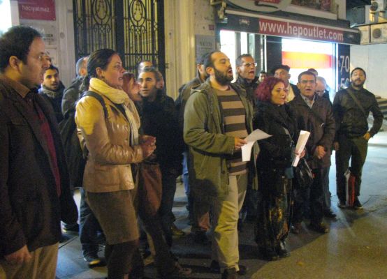 Dün akşam saatlerinde Agos gazetesi önünde bir araya gelen Türkiyeli Ermenilerden oluşan bir grup, cezaevlerinde 59 gündür devam eden açlık grevlerine destek verdi. Eylemde Sasun Estukyan Ermenice, Filor Uluk Benli ise Türkçe açıklama yaptı.