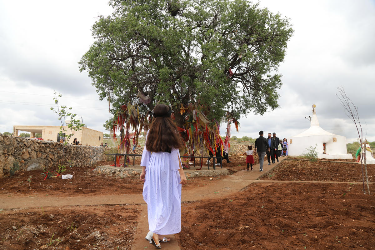 Êzidîler, köyde bulunan mezarlığı ziyaret ederek, mum yaktı ve ağaçlara ip bağlayarak dilek tuttu. Kutlamada yumurta tokuşturulurken, kutsal kabul edilen rengarenk ipler yurttaşların bileklerine takıldı.