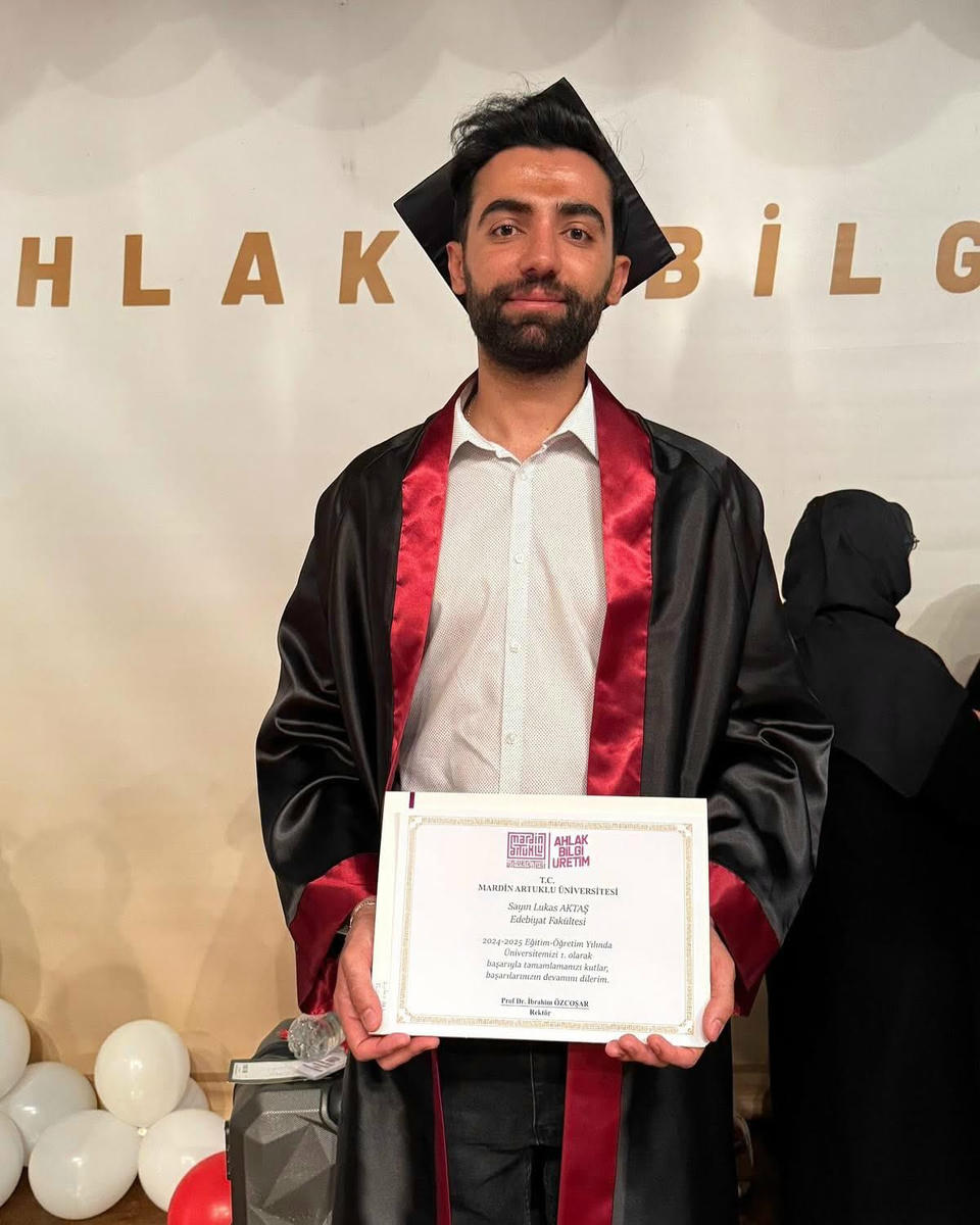 Bu öğrencilerden biri de Lukas Aktaş. Anadilini yaşatmak için çeşitli dil çalışmaları yürüten Aktaş, Mardin Artuklu Üniversitesi’nde Edebiyat Fakültesi Süryani Dili ve Edebiyatı Bölümünü bitirdi. Aktaş, geçtiğimiz ay Artuklu Üniversitesi’nin 2024-2025 döneminin birincisi oldu.