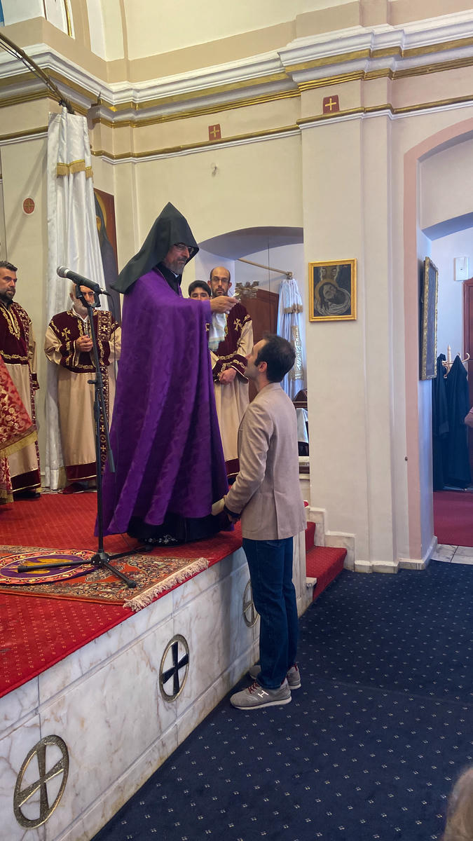 Patrik Maşalyan, vaazında Roni Kolukısayan’ı, duyarlılığından ötürü teşekkür ederken, kendisine takdir yazısı takdim etti.