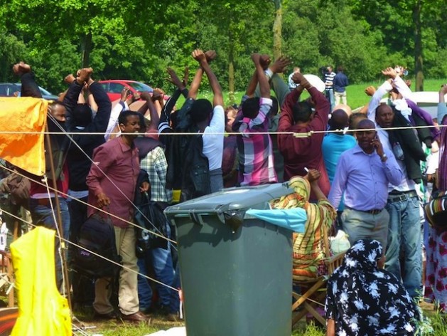 Fakat ‘sorun’ bu yolla hallolmadı; bilakis daha görünür bir hal aldı. Sığınmacılar iki gruba ayrıldı: Bir grup Amsterdam’da, diğer bir grup Lahey’de çadır kurup, bir kez daha aynı eyleme girişti. Lahey’deki protestocuların çoğu, ülkelerine geri dönmek istemeyen Iraklılardı. Irak devleti, ülkeye gönüllü bir biçimde dönmeyi reddeden Iraklıların vatandaşlıklarını tanımayı reddediyordu. Bu yüzden Iraklı protestocular, fiilen hukuken haymatlos statüsündeydi. Amsterdam’da ise en büyük grup, Hollanda devletinin baskılarına rağmen Somali büyükelçiliğinin vatandaş olarak tanımayı reddettiği, 50’yi aşkın Somaliliydi. Göstericiler, kâğıtsız oldukları için seyahat ve ikamet etme haklarından yoksundular.