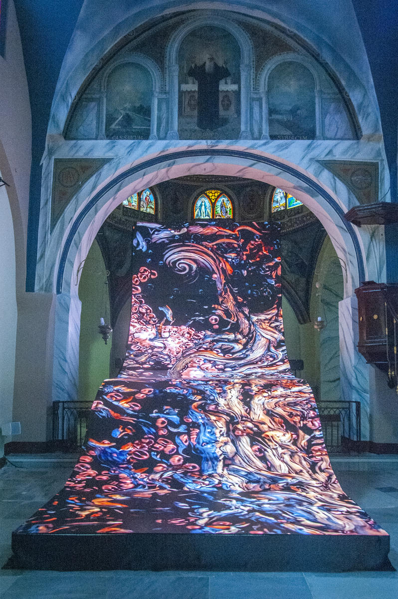 Video, performans ve enstalasyon alanlarında çalışarak beden, mekân, bellek ve toplumsal yapılar arasındaki etkileşimi sergileyen sanatçı, kişisel bellek ile kolektif algı arasında geçirgen alanlar yaratmaya odaklanarak izleyicilere düşündürücü karşılaşmalar sunuyor. Kiliseyi gezerken sunak kısmında, insan omurgası şeklinde sergilenen bir ekranda video çalışması izliyoruz. Köse’nin, Kuzey ve Güney Kore'yi ayıran çizgiye yaptığı ziyaretten ilham aldığı enstalasyondaki gökyüzü, su ve bitki örtüsünün kesintisiz devam ettiği, yalnızca insanların çitlerle durdurulduğu o çizgi, doğanın sürekliliğini insan yapımı sınırların yapaylığıyla karşılaştırıyor.