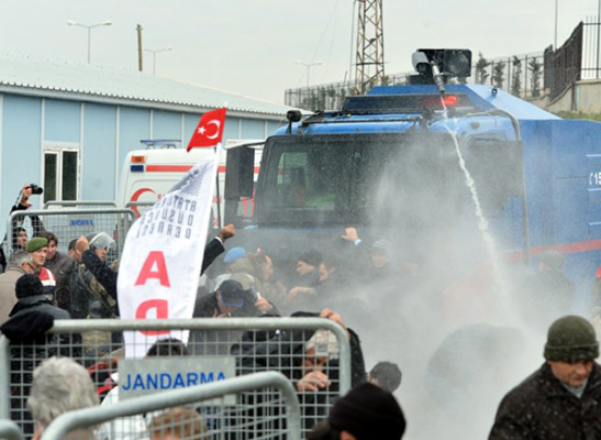 Salon kapasitesinin erken saatlerde dolması nedeniyle duruşmayı izlemek isteyenlerle güvenlik görevlileri arasında gerginlik yaşandı. Güvenlik kuvvetlerinin bariyerlerini aşmayı başaran 20-30 kişilik bir grup içeri girmeyi başarırken, kapıda bekleyen robocoplar kalabalık gruba biber gazıyla müdahale etti. İçeri giren diğer gruba ise su sıkıldı. Biber gazı ve sudan etkilenen kişiler ve yaşlılar arka tarafa doğru çekildi. Jandarmanın cezaevi çevresinde geniş güvenlik önlemleri aldığı görüldü.