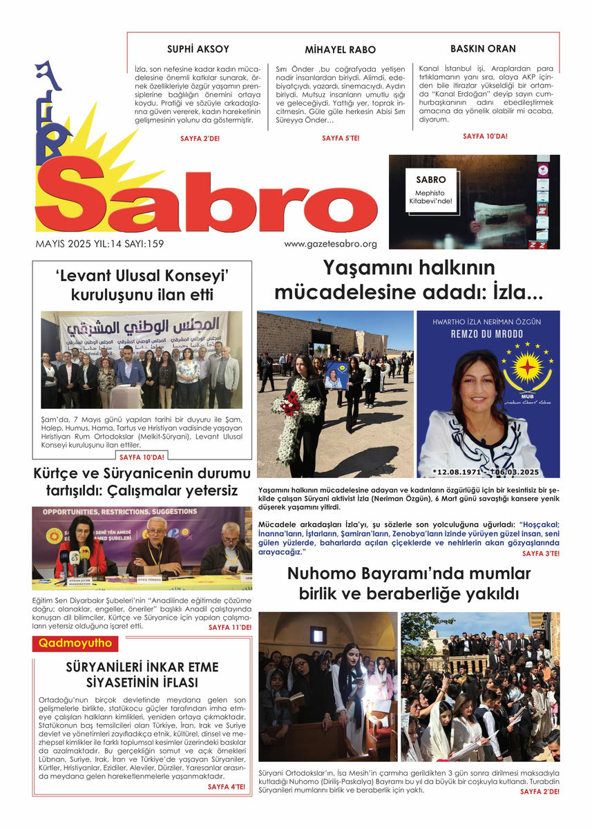 Gazete Sabro'ya, www.gazetesabro.org adresinden ulaşılabilir.