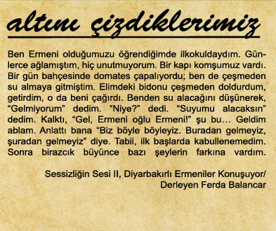 Gelin görün ki bu ülkede hoş gören taraf hep azınlıklar oluyor. Birisi size “Şimdiki Ermeniler iyi ama” diyor, hoş görüyorsunuz; sizin elinizden kek, börek yemek istemiyorlar, hoş görüyorsunuz; “Ermeni’yim” deyince “Estağfurullah” diyorlar yine hoş görüyorsunuz. Bu aşırı hoşgörüyü Osmanlı’dan mı miras aldık bilmem ama hoş gördüklerimiz biraz da hakikati görseler ne güzel olurdu… Hakikat için daha çok çalışmamız lazım, çok!