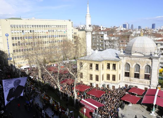 Cumhurbaşkanı Abdullah Gül, Başbakan Yardımcısı Bülent Arınç ve CHP Genel Başkanı Kemal Kılıçdaroğlu’nun da katıldığı cenaze namazının kılındığı caminin avlusu erken saatlerden itibaren dolmaya başladı. Medya, siyaset, iş, sanat ve spor camiasından pek çok ünlü ismi buluşturan cenaze namazında kalabalık, cami avlusuna sığmayıp sokaklara taştı.
