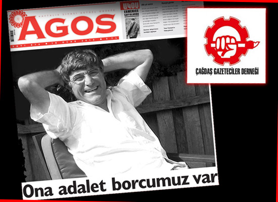 Çağdaş Gazeteciler Derneği (ÇGD) her yıl düzenli olarak dağıttığı Gazetecilik Ödüllerini açıkladı. Agos iki dalda ödüle layık görüldü. Agos gazetesi, 'Baskı ve zorluklara karşın ilkeli yayınını sürdürmesi nedeniyle ve Hrant Dink'in anısına' ÇGD onur ödülüne layık görülürken, gazetemiz muhabirlerinden Funda Tosun ise “Dink’e Suçsuz Diyen Hakim Üyeye uyarı” başlıklı haberiyle haber dalında ödüle layık görüldü.