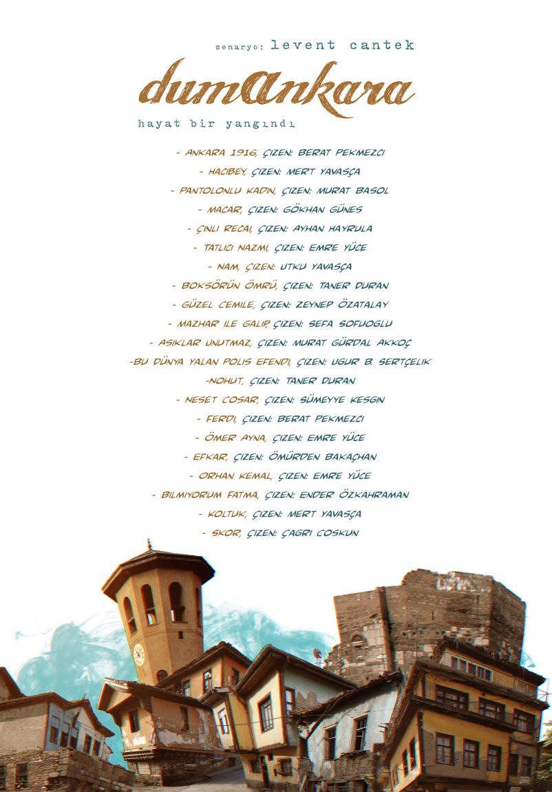 Hepsi Ankara'da geçen 21 hikâye var. 1916 yangınıyla başlıyor, günümüze kadar geliyor. Çoğunluğu kenar mahallelerde geçiyor, oralardan çıkma kahramanları var hepsinin... Edebi nitelikli, geleneksel çizgi roman anlatımının dışında işler olarak tanımlanabilirler.