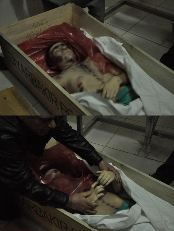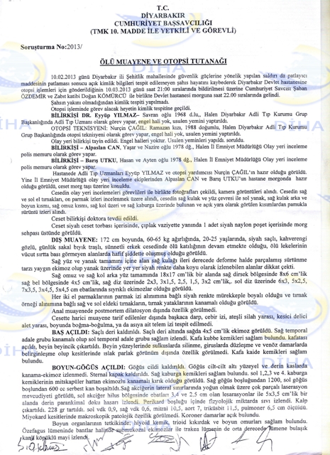 Dicle Haber Ajansı’nın ulaştığı raporda, “Sağ yüz ve yanak tamamını içine alan sağ kulağı ileri derecede deforme halde parçalanmış sürtünme tarzı yaygın ekimoz olup yanak üzerinde yer yer siyah renkte daha koyu olarak izlenebilen alanlar dikkat çekti” ve “Sol 1,2,3, ve 4. kaburga kemiklerinin mitskapüler hattan ekimozlu kanamalı kırık olduğu görüldü” ifadeleri yer aldı.